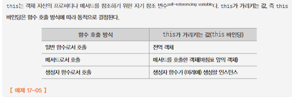※ this는 객체 자신의 프로퍼티나 메서드를 참조하기 위한 자기 참조 변수고,