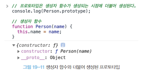// 함수 정의(constructor)가 평가되어 함수 객체를 생성하는 시점에 프로토타입도 더불어 생성된다.